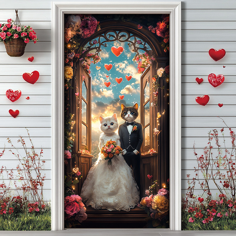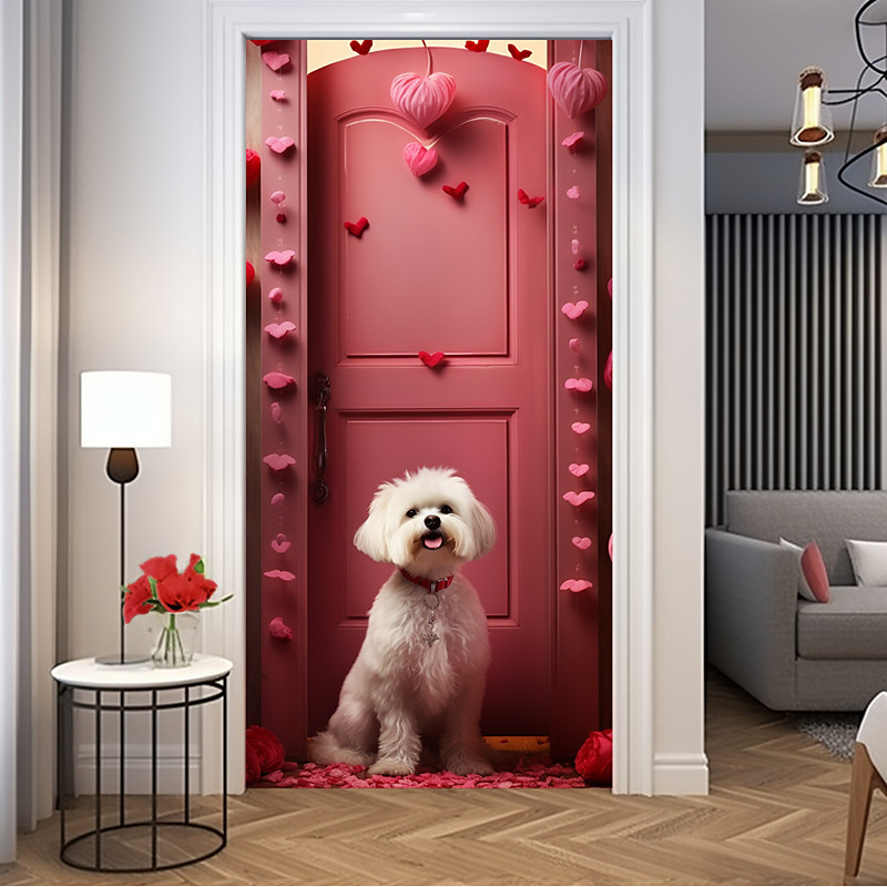 Wedding Outdoor Decorations Door Covers Dogs Door Tapestry Door Curtain Decoration Backdrop Indoor/Outdoor Door Banner for Front Door Farmhouse Pink