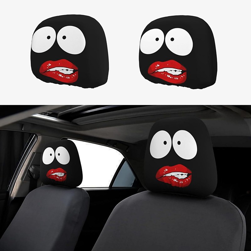 2pcs Funny Lips Print Car Headrest Covers, Neck Pillow and Lumbar Support Cushion, Soft and Fluffy, All-Season Use, Suitable for Long Distance Driving, Daily Commuting, Business Travel, In-Car Rest