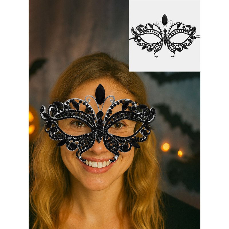 Women's Rhinestone Masquerade Mask, Butterfly Style Crystal Party Eye Mask for Halloween Party and Costume Ball