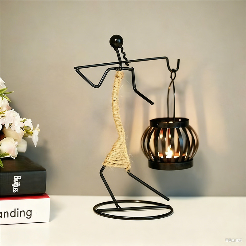 Nordic Metal Candlestick Abstract Character Sculpture Candle Holder Decors Handmade Figurines Home Decoration Art Gifts Button Battery Powered 1PC