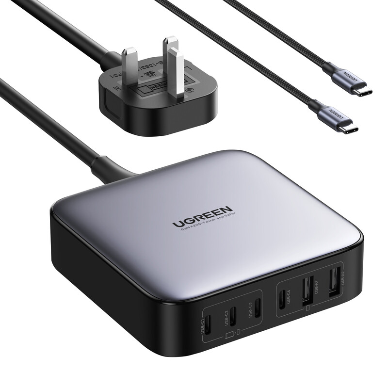 Ugreen Nexode USB C Charger 200W Plug 6 Ports GaN PD Desktop Power Adapter with 1m USB C Cable Compatible with MacBook Pro/Air M1, iPhone 16/15, iPad Pro, Pixel 9, Galaxy S24/S23, Tab A8/S8, etc