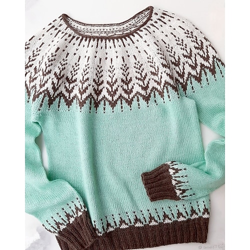 Damen Weihnachtspullover Fair Isle Pullover Pullover Fair Isle Sweater Mode Lässig Geometrisch Gerippt Rundhalsausschnitt Gestrickt Druck Langarm Normale Oberteile Stricken Weihnachten Outdoor Täglich