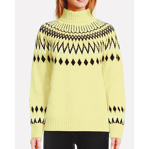 Damen Weihnachtspullover Fair Isle Pullover Pullover Fair Isle Sweater Streetwear Lässig Blumen Stehkragen Gestrickt Druck Langarm Normale Oberteile Stricken Täglich Ausgehen Wochenende Gelb Rosa