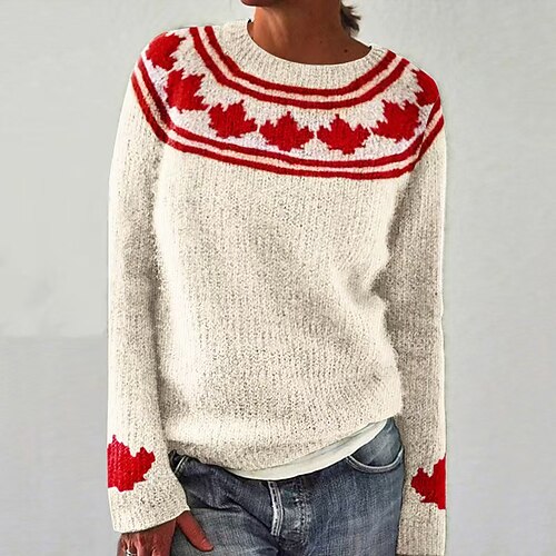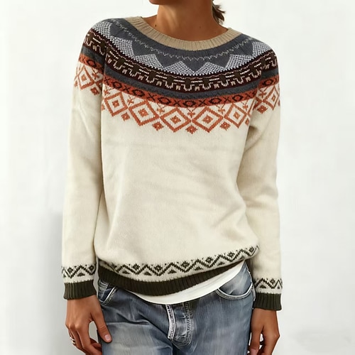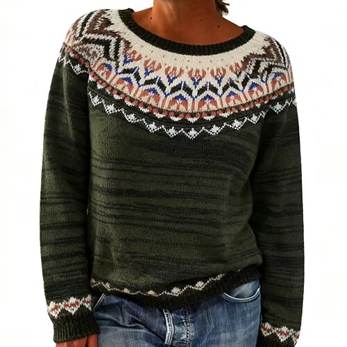 Damen Weihnachtspullover Fair Isle Pullover Pullover Fair Isle Sweater Streetwear Lässig Geometrisch Rundhalsausschnitt Gestrickt Druck Langarm Normale Oberteile Stricken Täglich Ferien Ausgehen