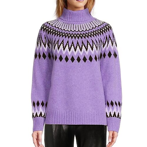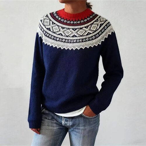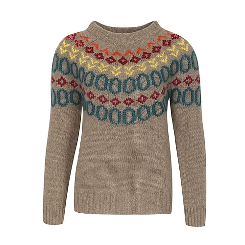 Damen Weihnachtspullover Fair Isle Pullover Pullover Fair Isle Sweater Mode Streetwear Lässig Geometrisch Gerippt Rundhalsausschnitt Gestrickt Langarm Normale Oberteile Stricken Outdoor Täglich