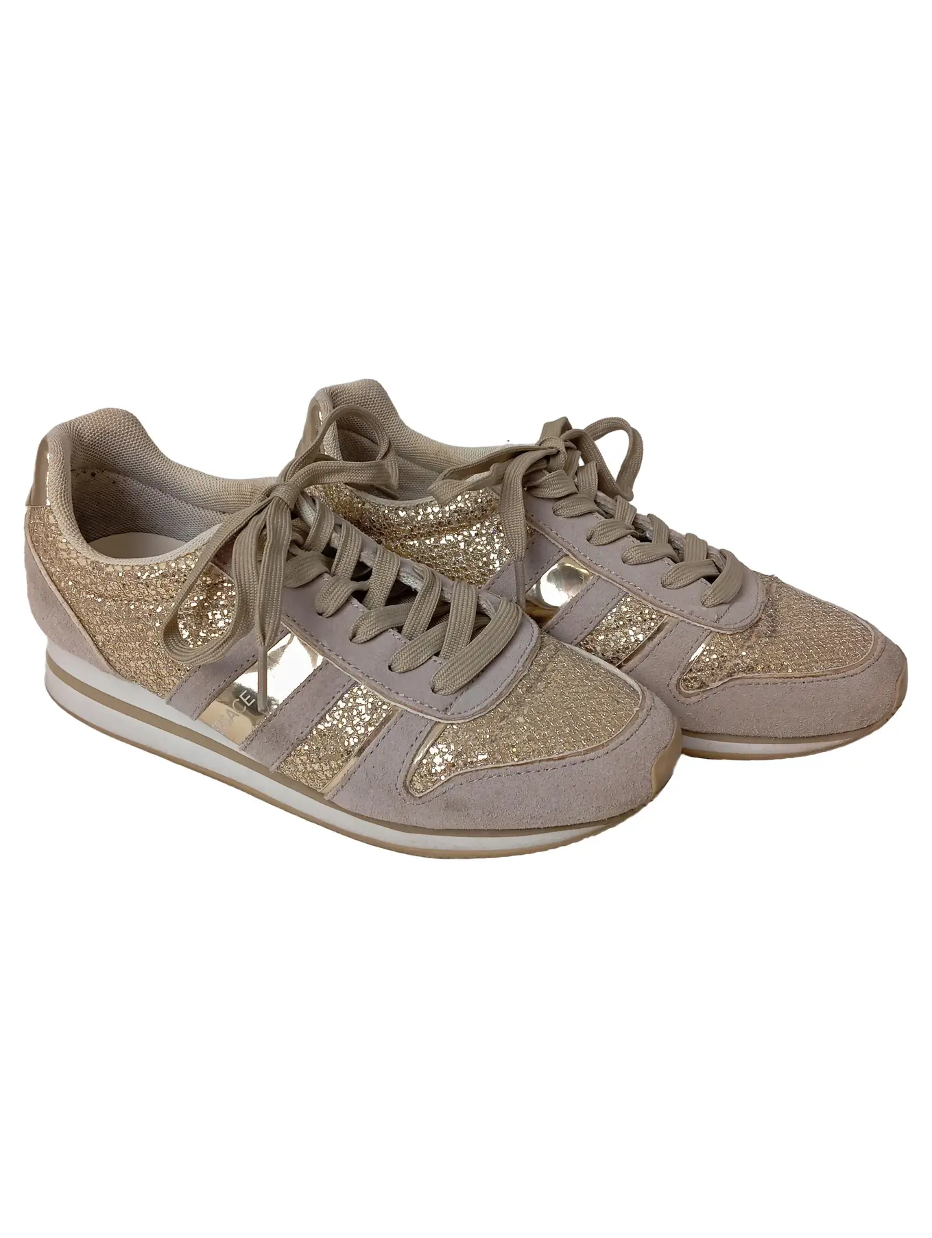 VERSACE JEANS Damen Sneaker Low Gr.38 Beige Glitzer