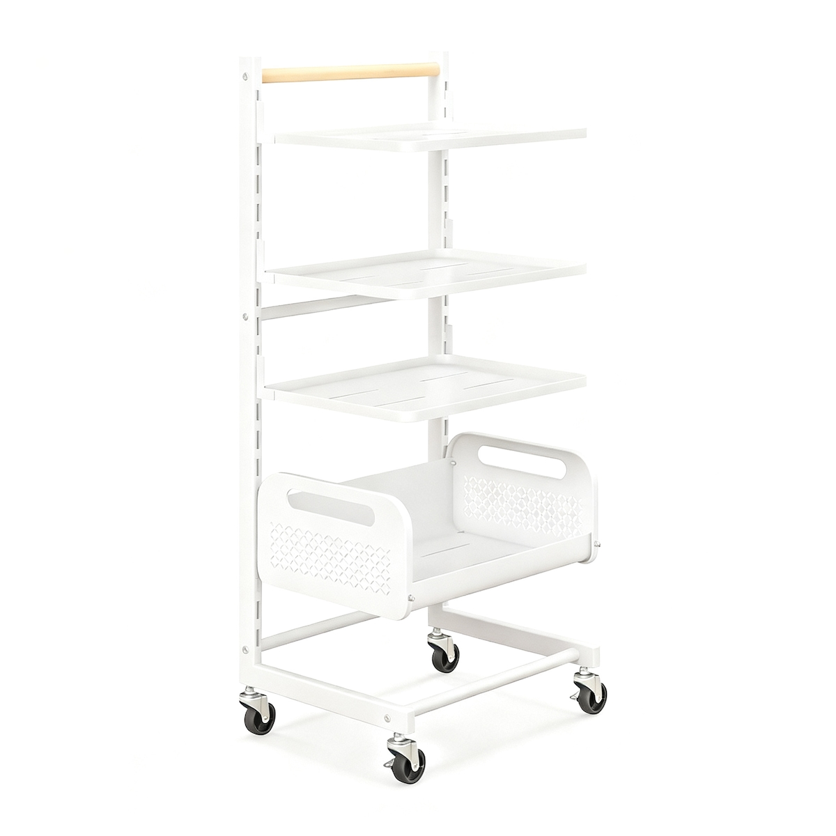 COSTWAY 4-stöckiger Rollwagen, Servierwagen mit verstellbaren Regalen, Küchenwagen mit Rädern & Griff