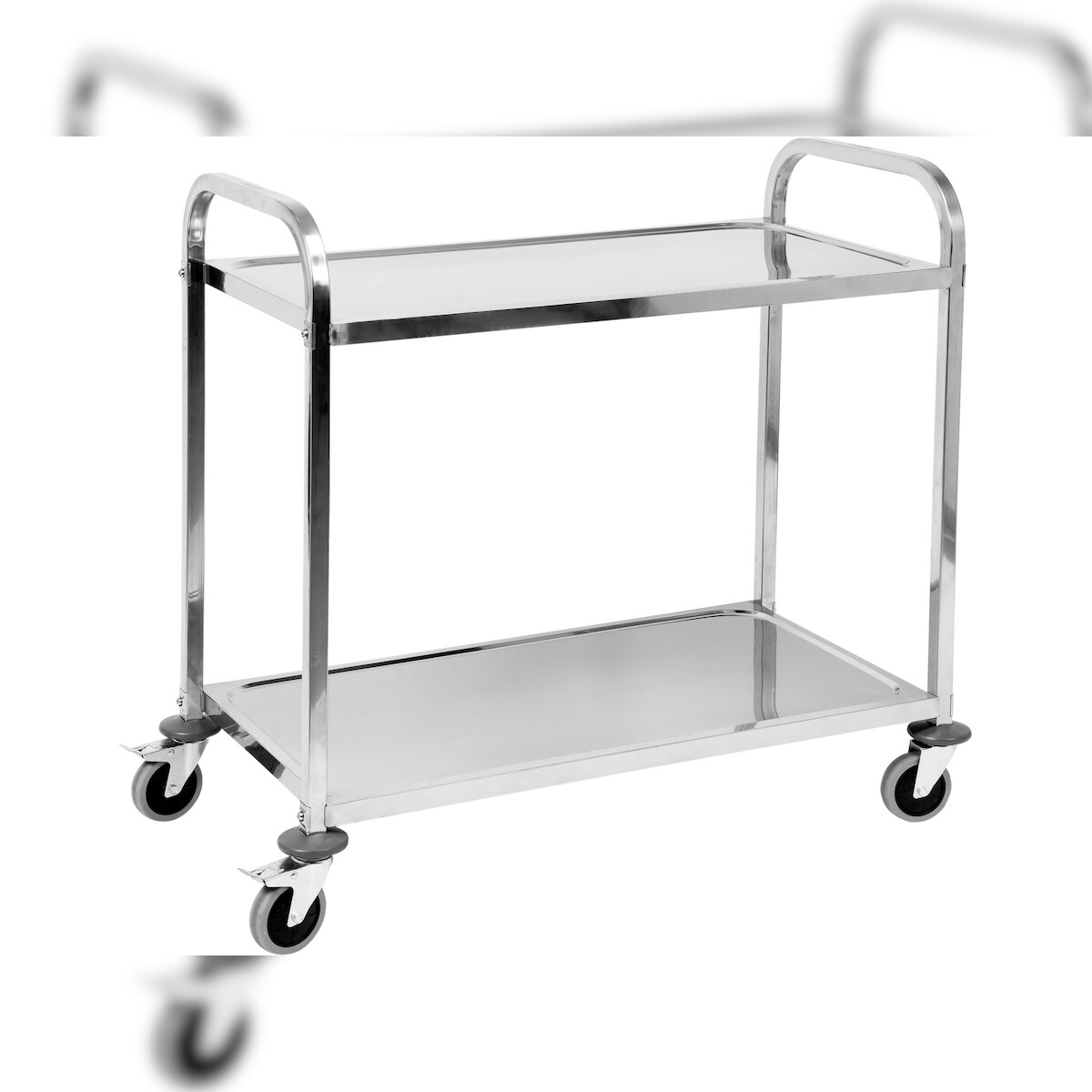 GastroHero Servierwagen Edelstahl 86x54 cm Transportwagen 2 Etagen Gastro Abräumwagen Küchenwagen