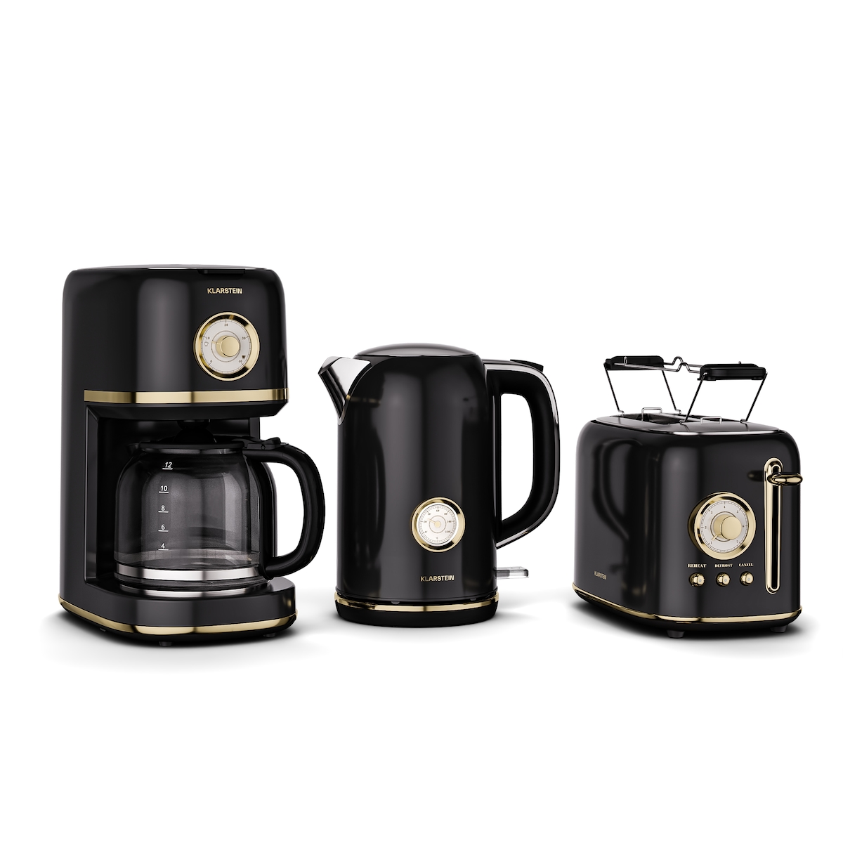 Victoria Frühstücksset | Toaster, Wasserkocher, Kaffeemaschine | 12 Tassen Schwarz Klarstein