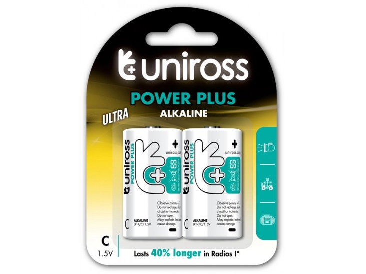 Uniross Power Plus C / LR14 Standardbatterier 7000mAh, 2 stk.