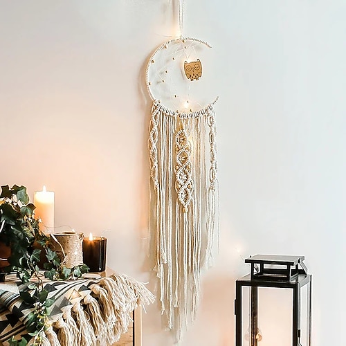 1 pezzo bohémien luna stella acchiappasogni illuminazione boho macramè appeso a parete acchiappasogni boho decorazione da parete arazzo tessuto a mano per ragazze adolescenti ragazzi bambini asilo