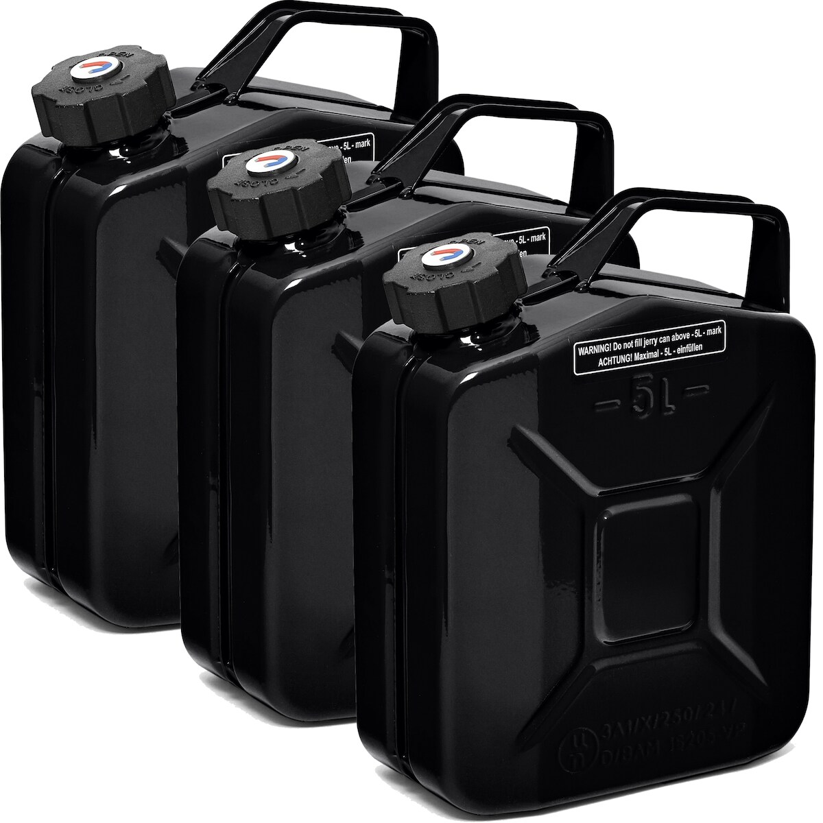 BW® Kraftstoffkanister Metall Benzinkanister 3x 5 Liter mit Schraubverschluss - Schwarz - RAL 9005 - TÜV-geprüft und UN-Zulassung - Made in Europe