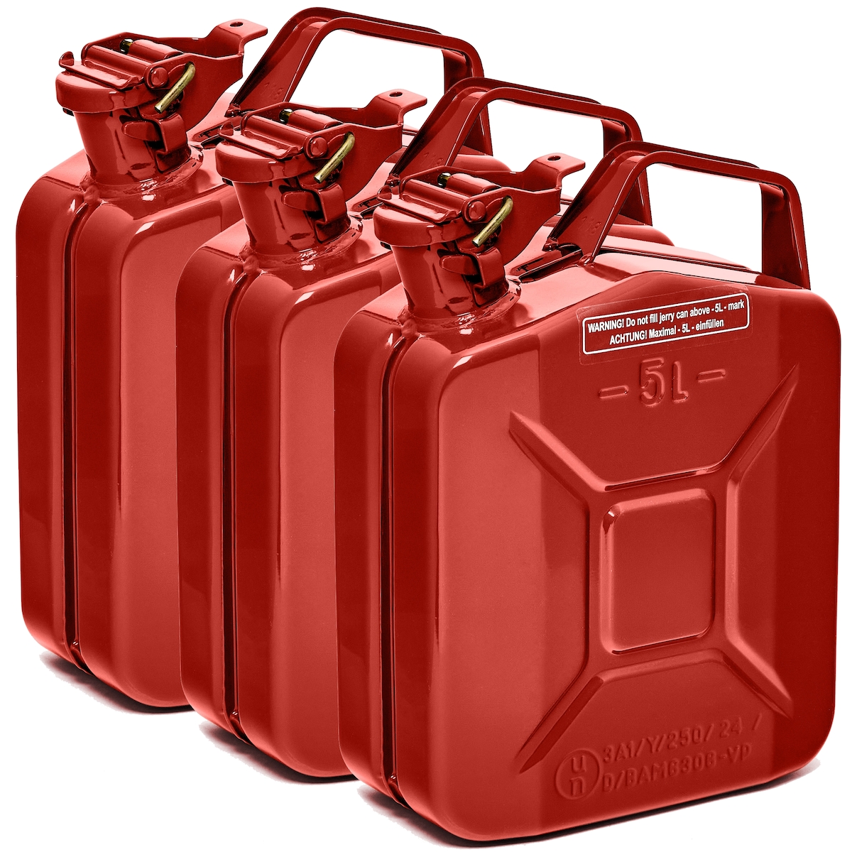 BW® Kraftstoffkanister Metall Benzinkanister 5x 10 Liter mit Schraubverschluss - Rot - RAL 3000 - TÜV-geprüft und UN-Zulassung - Made in Europe