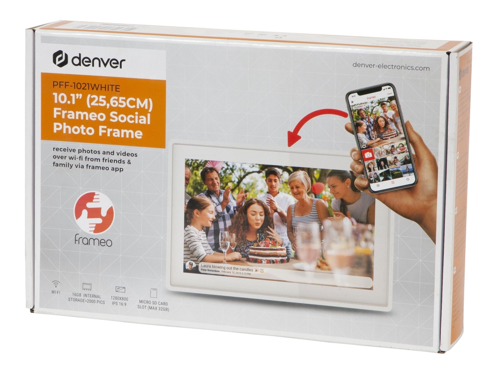 Denver PFF-1037W, 25,6 cm (10.1), 1280 x 800 pikseliä, IPS, JPEG, 16 GB, MicroSD (TransFlash)