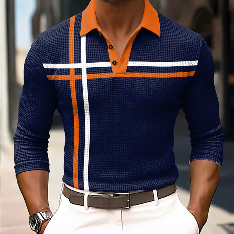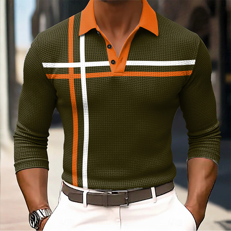 Men's Striped Waffle Polo Shirts Long Sleeve Polo Shirts Collared Shirts Business Casual Business Wear to work Daily Wear Buttons Spring Fall Winter orange1 Orange 2 Orange