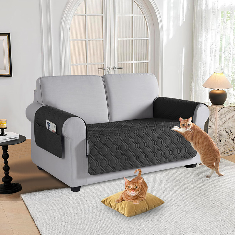 1pc Waterproof Backless Double Line Sofa Cover Seat Cover With Armrest Recliner Furniture Protector Washable Pet Friendly Pocket Slipcover