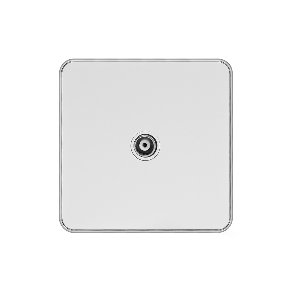 Soho Lighting Polished Chrome Flat Plate 1 Gang TV Aerial Socket Wht Ins Screwless