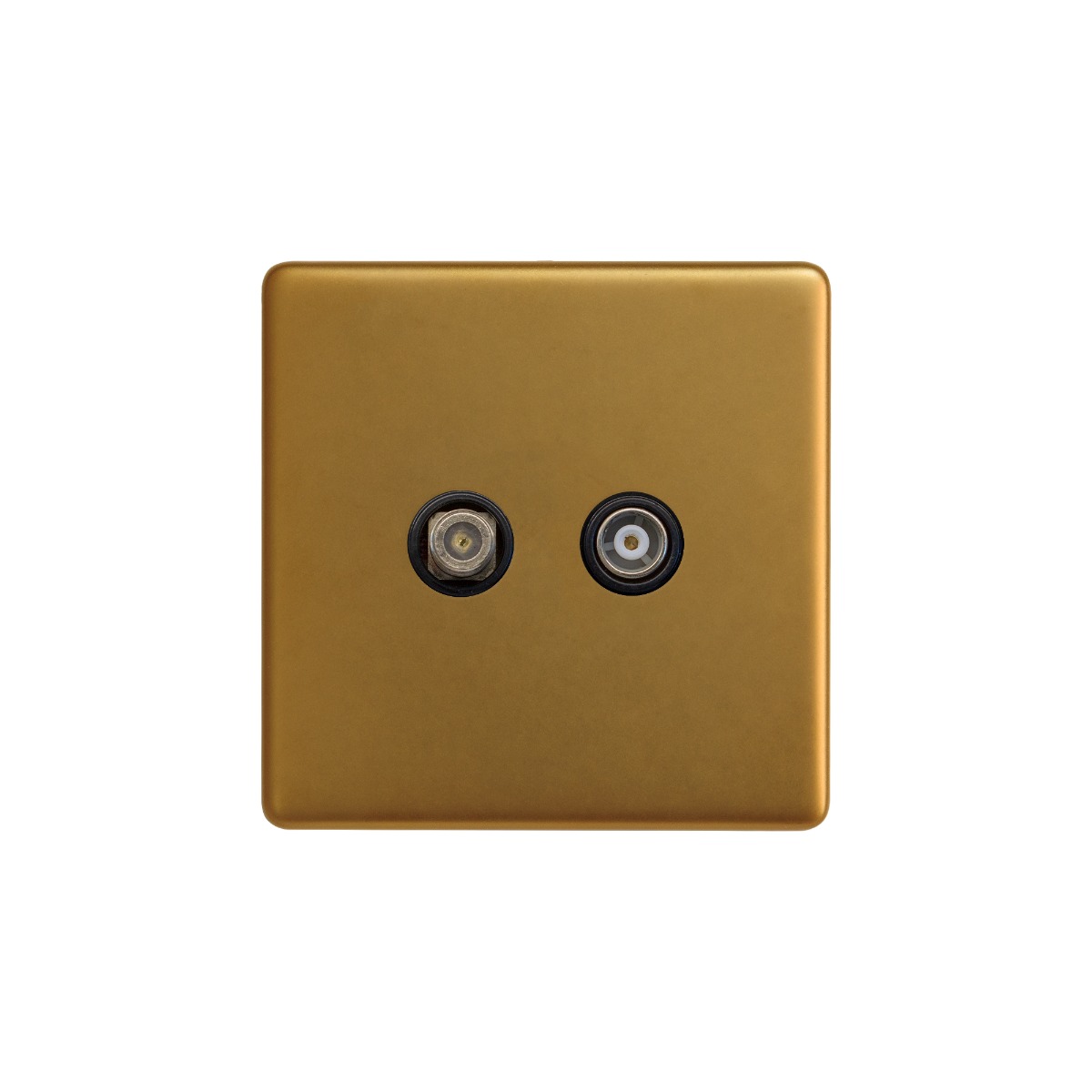 Soho Lighting Brushed Brass TV+ Satellite Socket Black Insert Screwless