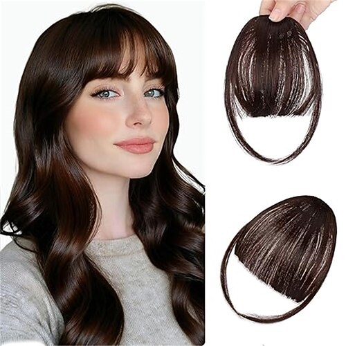 Clip-in-Pony, mittelbrauner, französischer Fake-Pony zum Einclipsen für Damen, Pony mit Schläfenpartie, Haarteile, Fake-Pony für den Alltag
