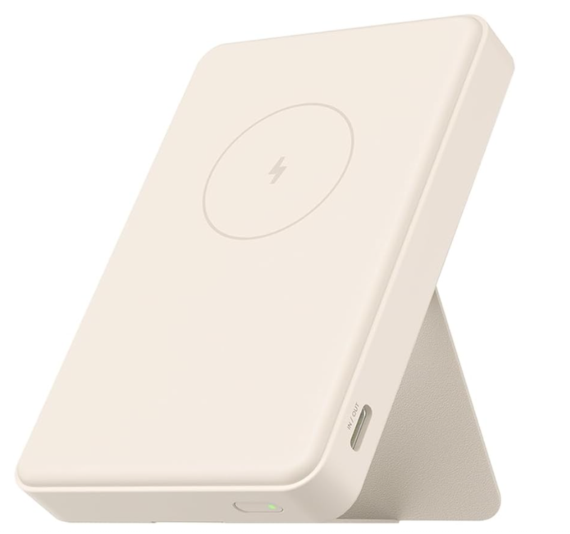 Xiaomi 15 W Magnetischer Power Bank - 6000 mAh, Qi 2.0 Wireless Certified Fast Charging, Lädt 2 Geräte gleichzeitig, Flugtauglich, mit Klappständer - Leistungsstark und Praktisch, Beige