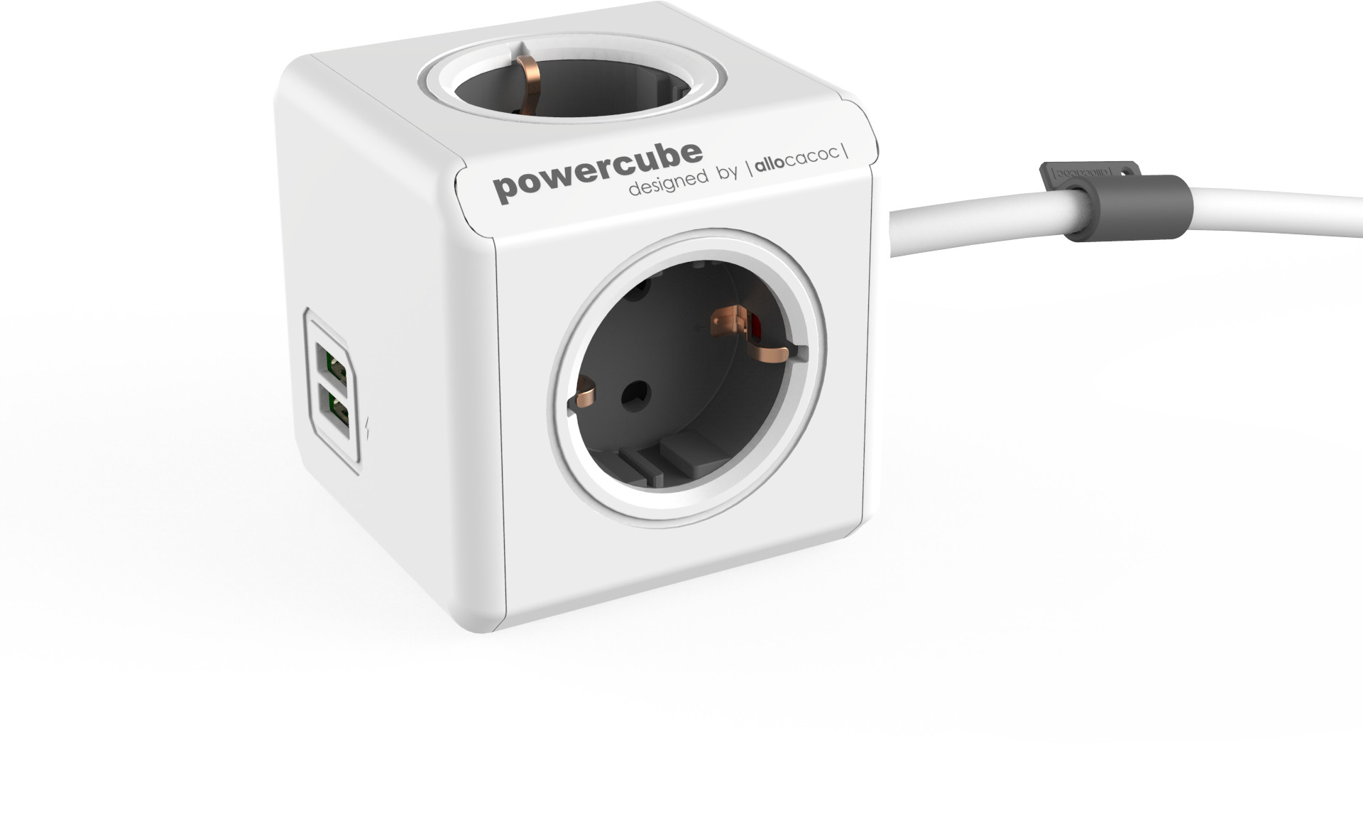 Allocacoc PowerCube extended usb - Stromverteilereinheit - AC 230 V - Ausgangsanschlüsse: 4 (CEE 7/4) - Wagen grau