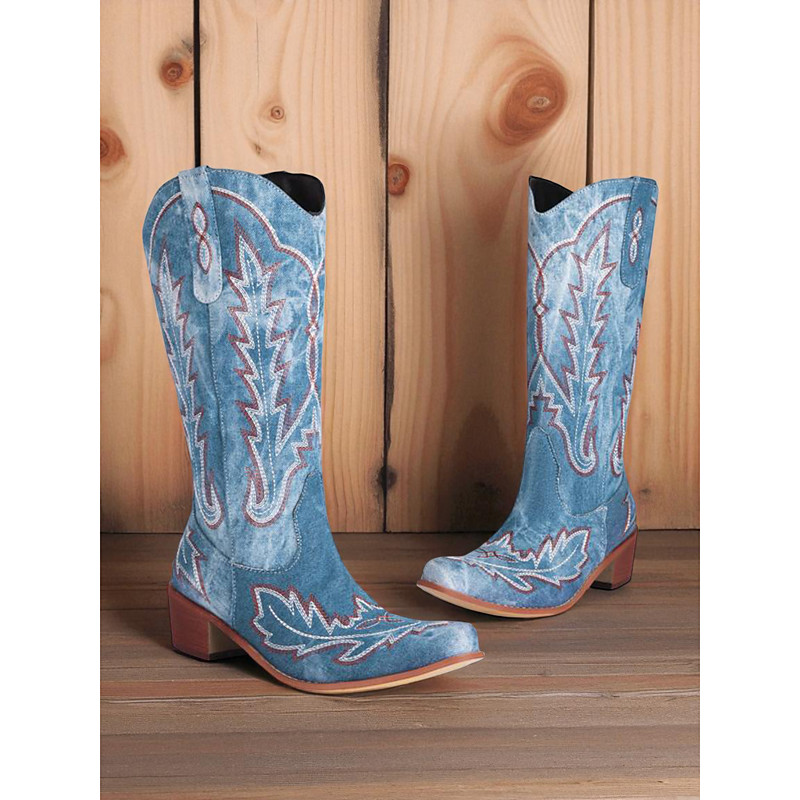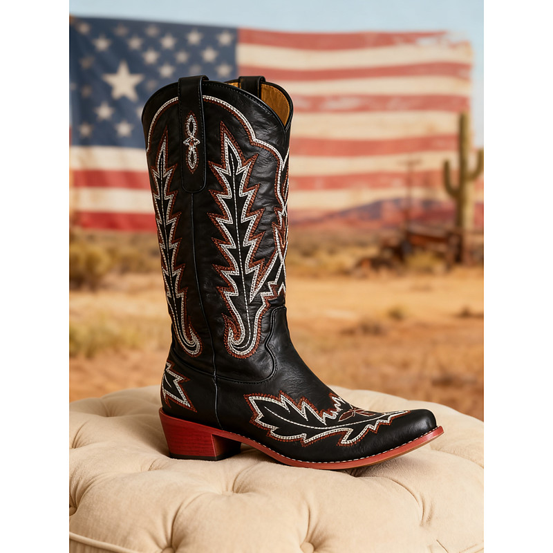 Women's Red Cowboy Boots with Embroidery - Stylish Western Boots for Christmas, Holiday Parties and Winter Outings