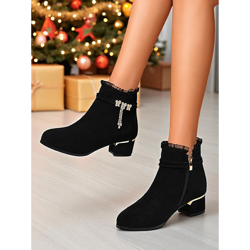 Women's Red Ankle Boots with Rhinestone Bow – Elegant Holiday Heeled Boots for Christmas Parties and Winter Fashion