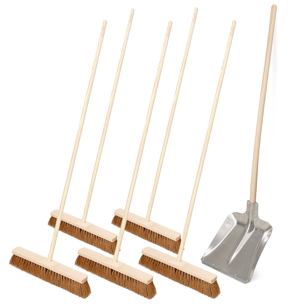 BRB 5x Saalbesen Kokos, Länge 500 mm + 1x Alu-Schaufel