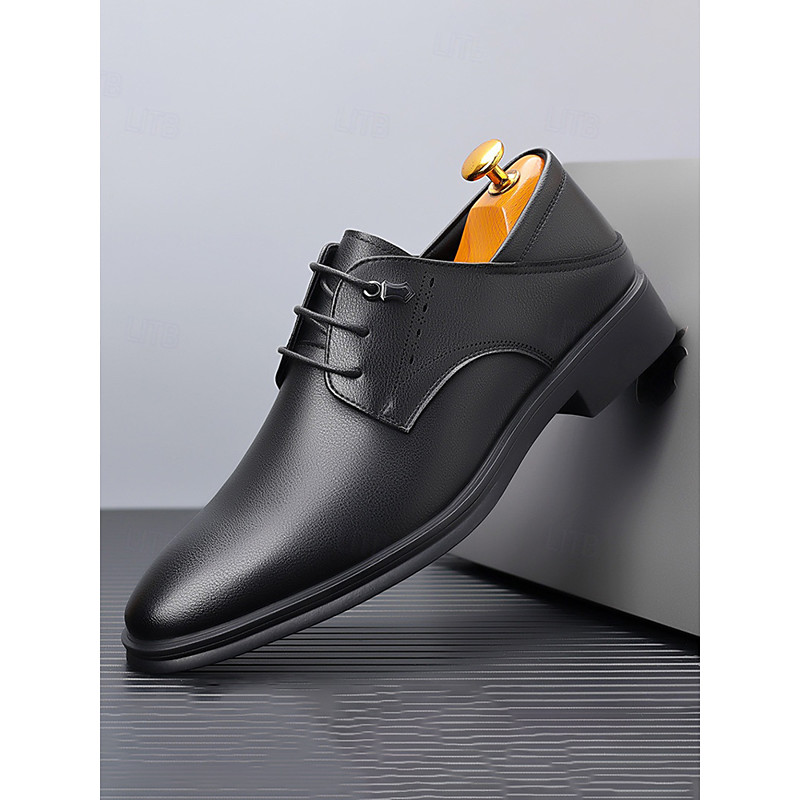 Men's Classic Faux Leather Oxford Shoes - Black, Polished Look, Stylish and Comfortable for Office Formal Events and Weddings