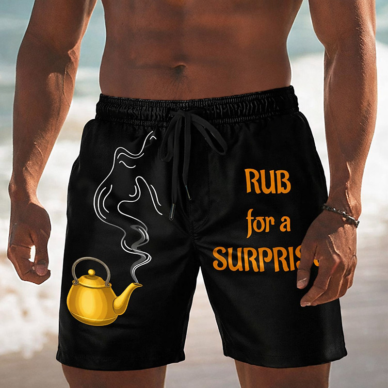 Men's Banana Teapot Funny Slang Swim Trunks Swim Shorts Board Shorts Mid Waist Funny Casual Beach Vacation Wear Side Pockets Mesh Lining Elastic Drawstring Waist Designer Clothing Apparel