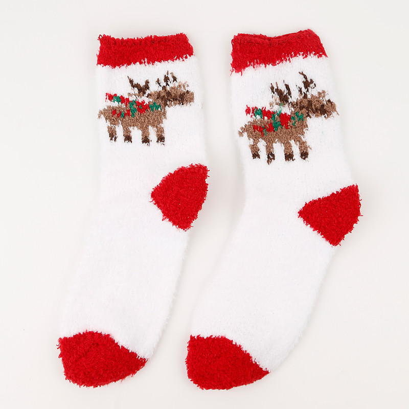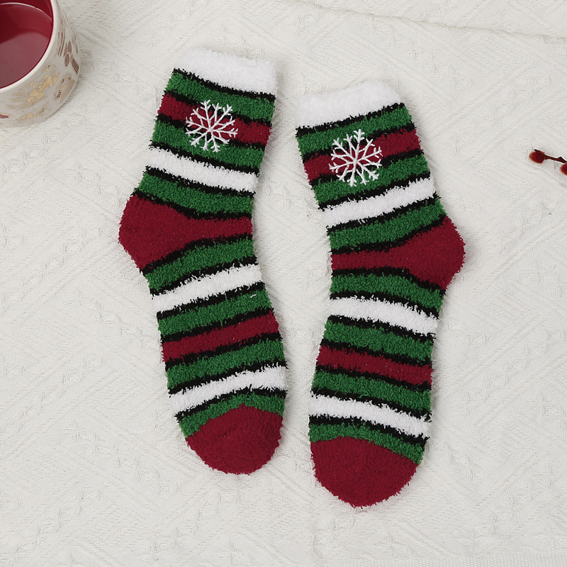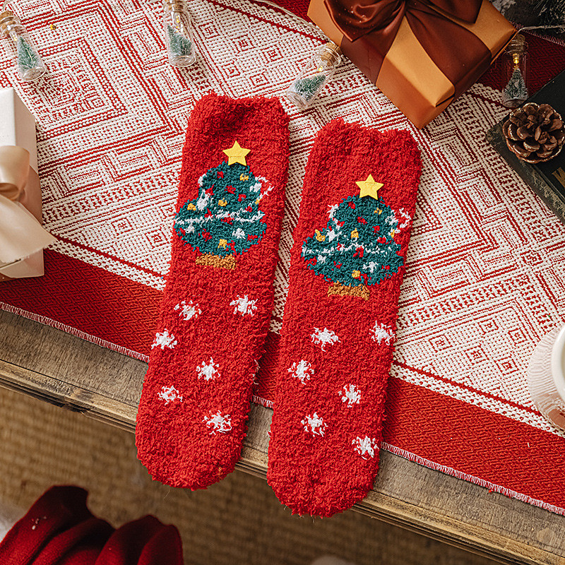 Christmas Socks for Women, Cozy Coral Fleece Warm Slipper Socks, Thick Plush Fuzzy Winter Sleep Socks, Couple Family Matching Gift, Indoor Non-Slip Floor Socks