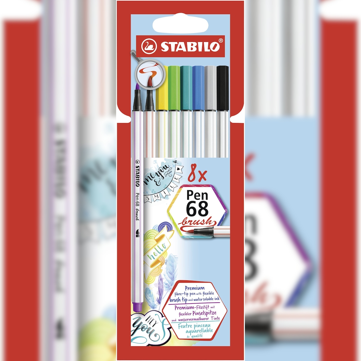 Stabilo Pen 68 Brush - sæt med 12 fiberpenne, multifarvet