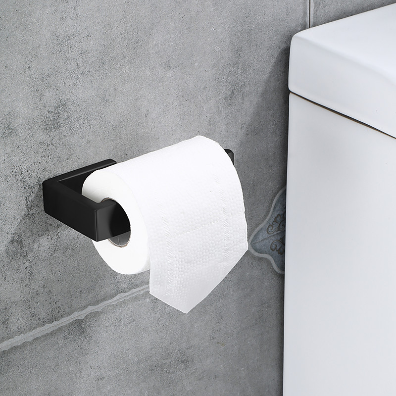 1pc Adhesive Toilet Paper Holder - Self Adhesive Black Toilet Paper Roll Holder Wall Mount For Bathroom And Kitchen, SUS-304 Stainless Steel