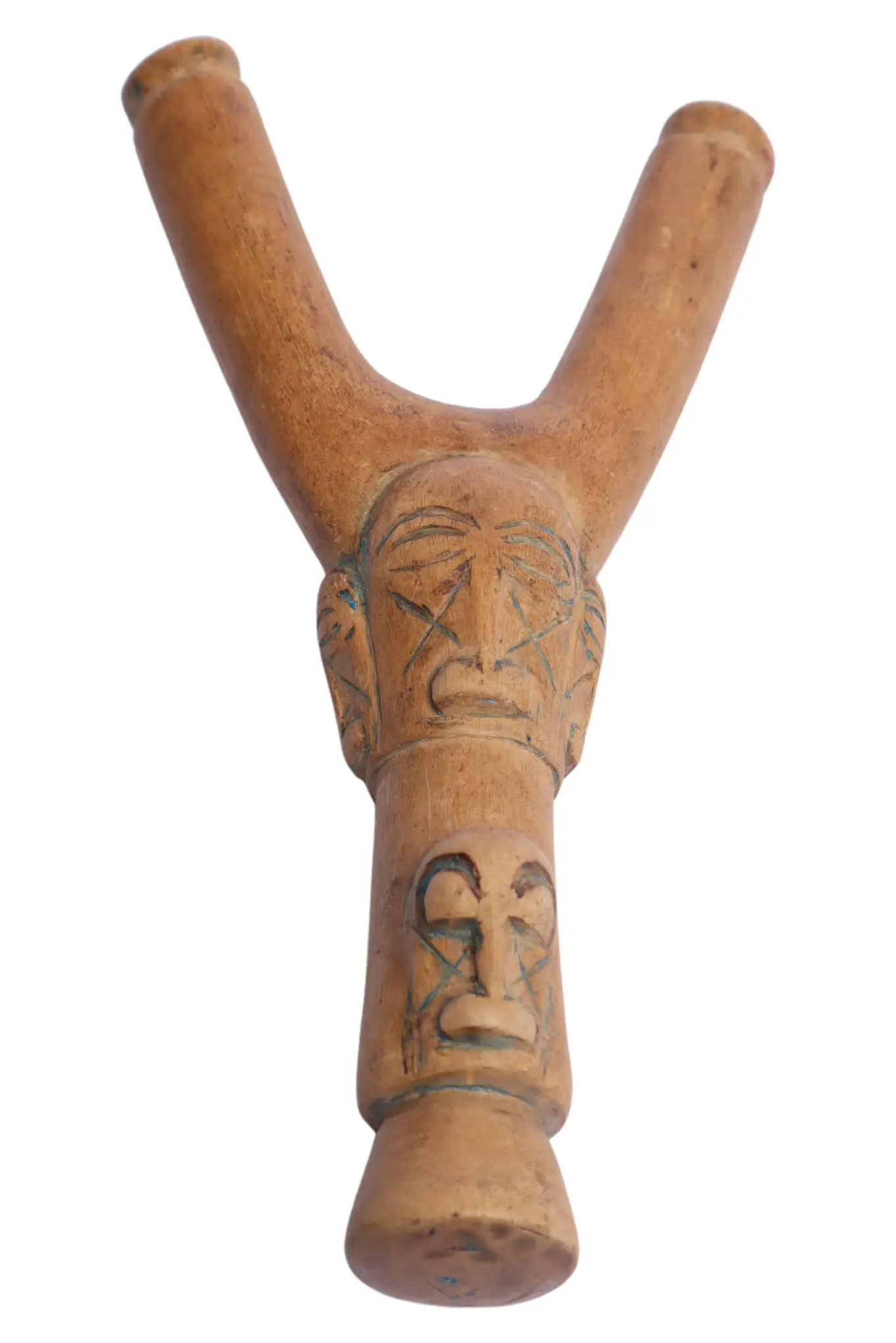 Dekofigur Holz Ethno Motiv Steinschleuder Braun Vintage