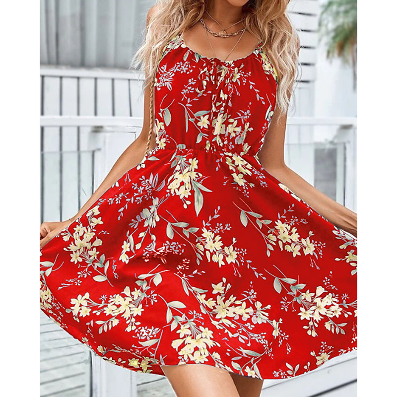 Women's Mini Dress White Dress Casual Dress Floral Dress Fashion Outdoor Party Holiday Regular Fit Flower Sleeveless Straps Blue Red Green Summer