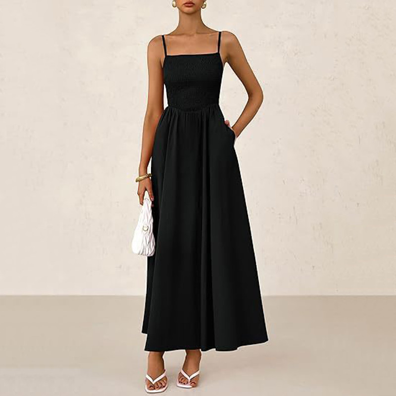 Women's Long Dress Maxi Dress Cotton Linen Dresses Casual Dress Summer Dress Slip Dress Fashion Modern Daily Weekend Regular Fit Plain Sleeveless Straps Black Blue Green Khaki Summer
