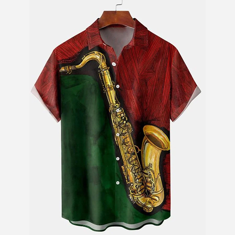 Men's Boardmasters Musical Instrument Jazz Shirt Summer Shirt Button Up Shirt Short Sleeve Vintage Retro Outdoor Vacation Dailywear Summer Spring Turndown 3D Print Collared Shirts Front One Pocket