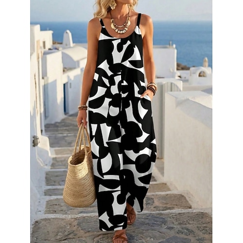 Per donna Tuta Streetwear Tinta unica Senza Maniche Molto stondata Stampato Quotidiano Spiaggia Vestibilità comoda Nero Bianco Verde Estate