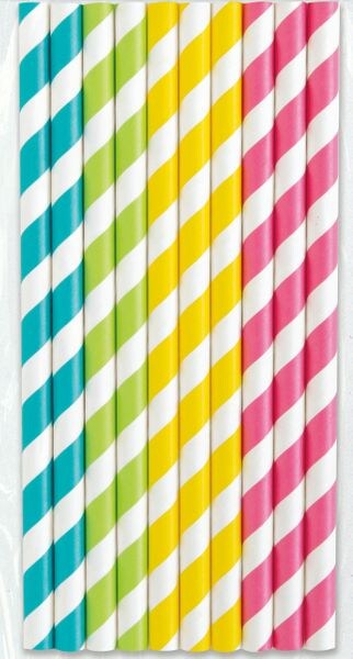 10 bunt gestreifte Trinkhalme