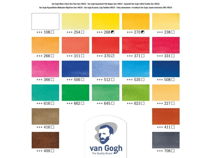 Van Gogh Watercolour wooden box | 24 half pans + 3 accessories