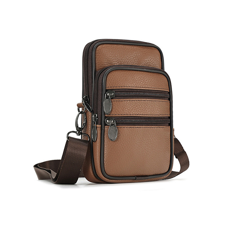 Men's Leather Crossbody Shoulder Bag with Multi-Pocket Design, Small Travel Messenger Bag and Waist Bag for Casual Daily Use and Outdoor Activities