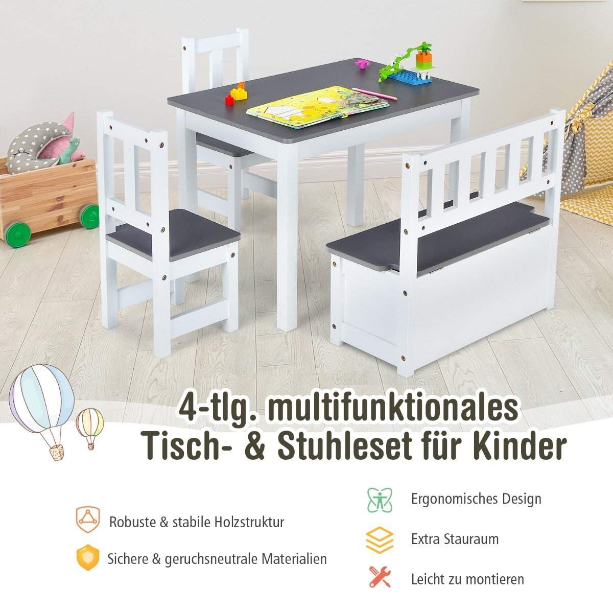4-delt barnesittegruppe tre sittegruppe barnebordgruppe grå + hvit