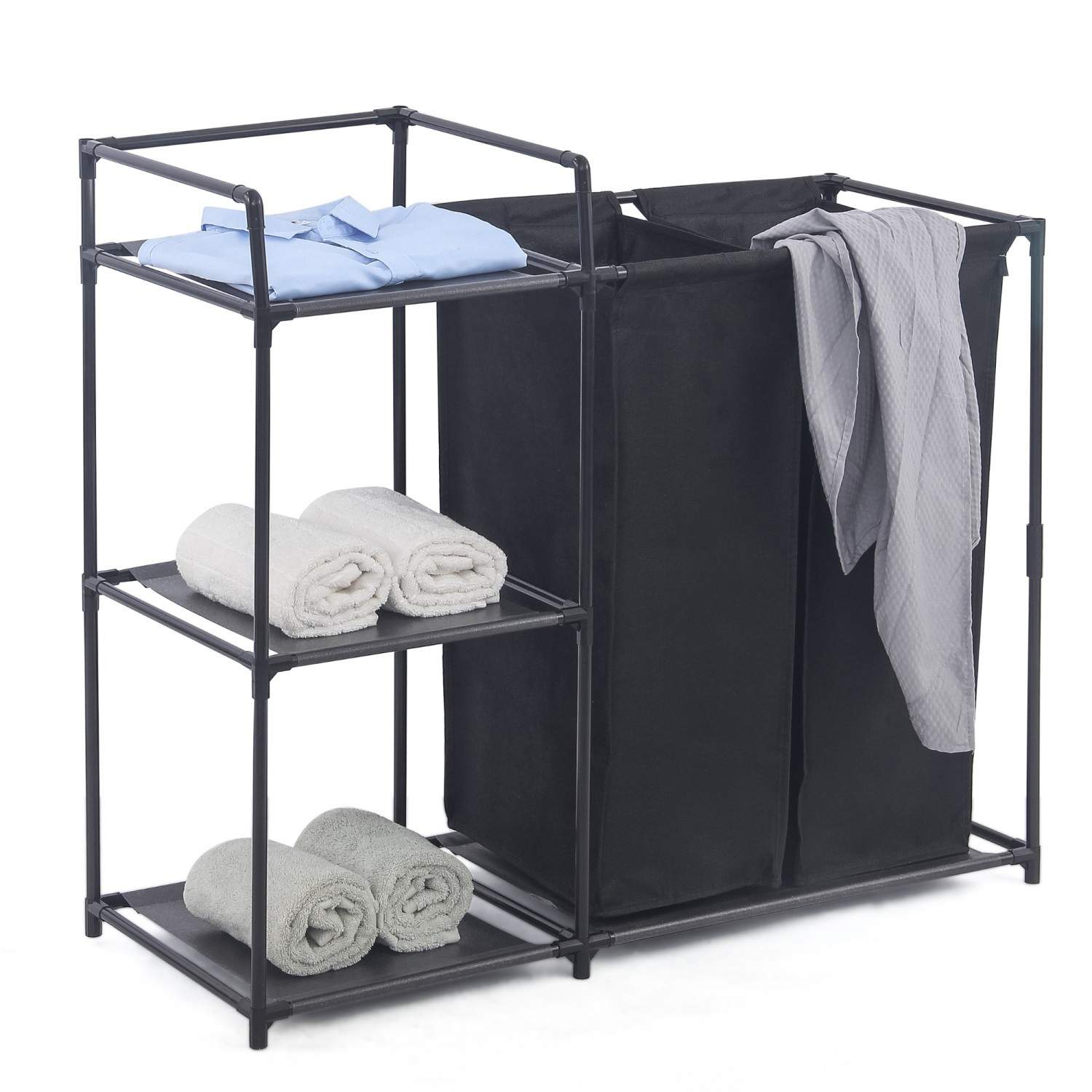 Herzberg HG-04531: 2 avtakbare poser vaskerisortering med 3-lags oppbevaringshylle