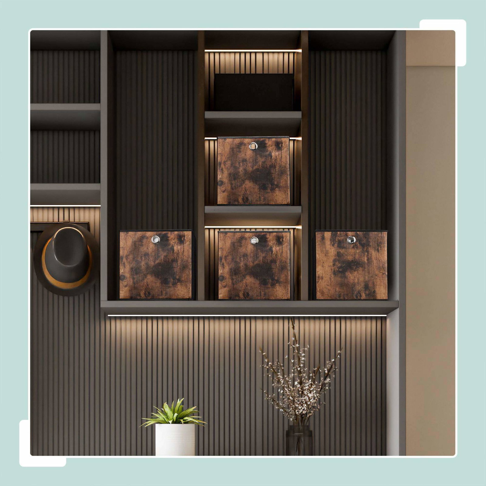 Oppbevaringsboks i stoff med trelook, 6-pakning