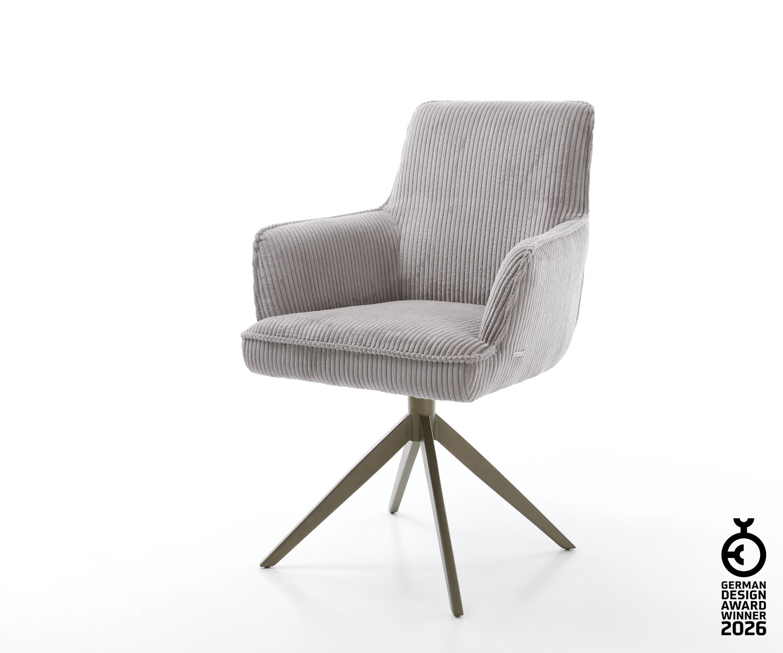 DELIFE Drehstuhl Heira-Flex mit Armlehnen Cord Silbergrau Kreuzgestell breit Effektfinish Titan 360° drehbar Taschenfederkern, Esszimmerstühle