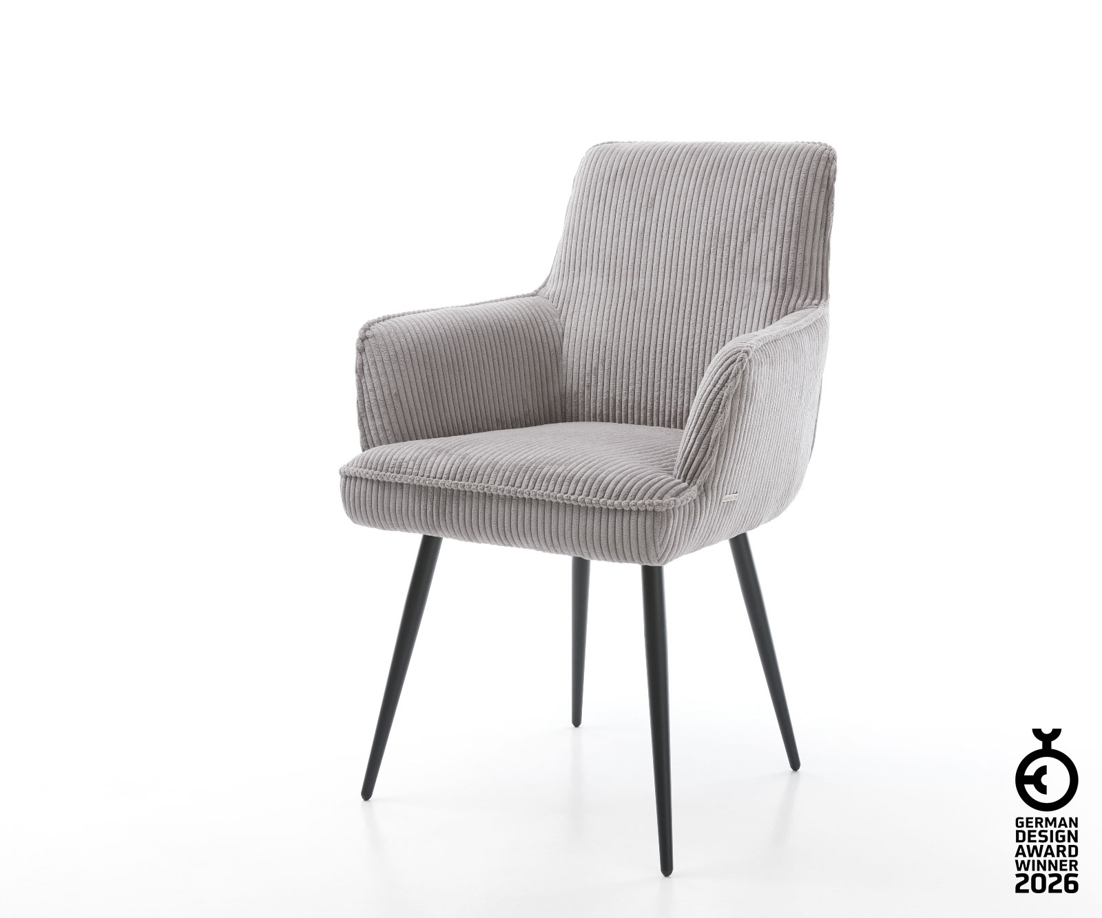 DELIFE Esszimmerstuhl Vinka-Flex mit Armlehnen Cord Silbergrau 4-Fuß konisch Schwarz Taschenfederkern, Esszimmerstühle