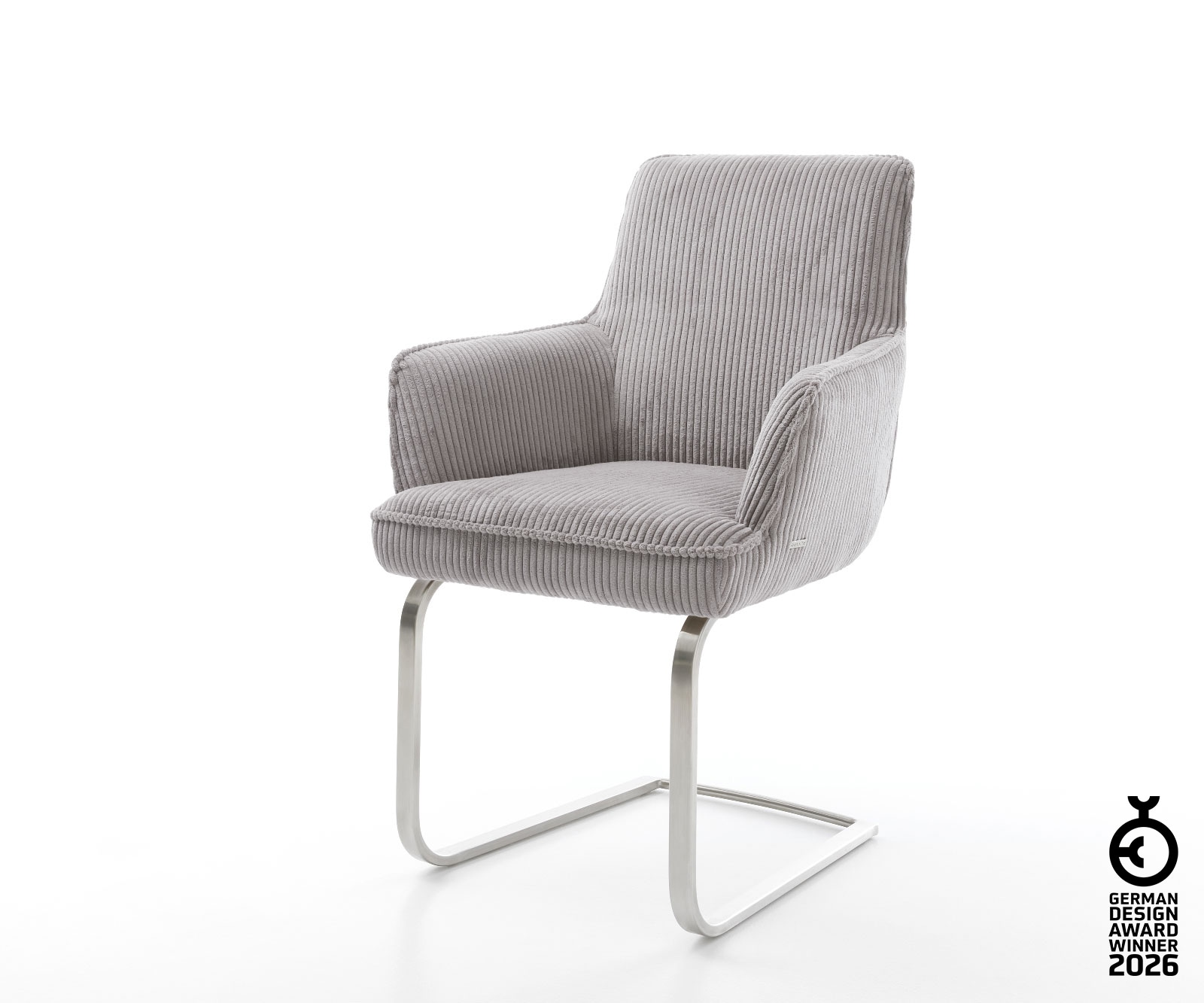DELIFE Freischwinger Heira-Flex mit Armlehnen Cord Silbergrau Freischwinger flach Edelstahl Taschenfederkern, Esszimmerstühle
