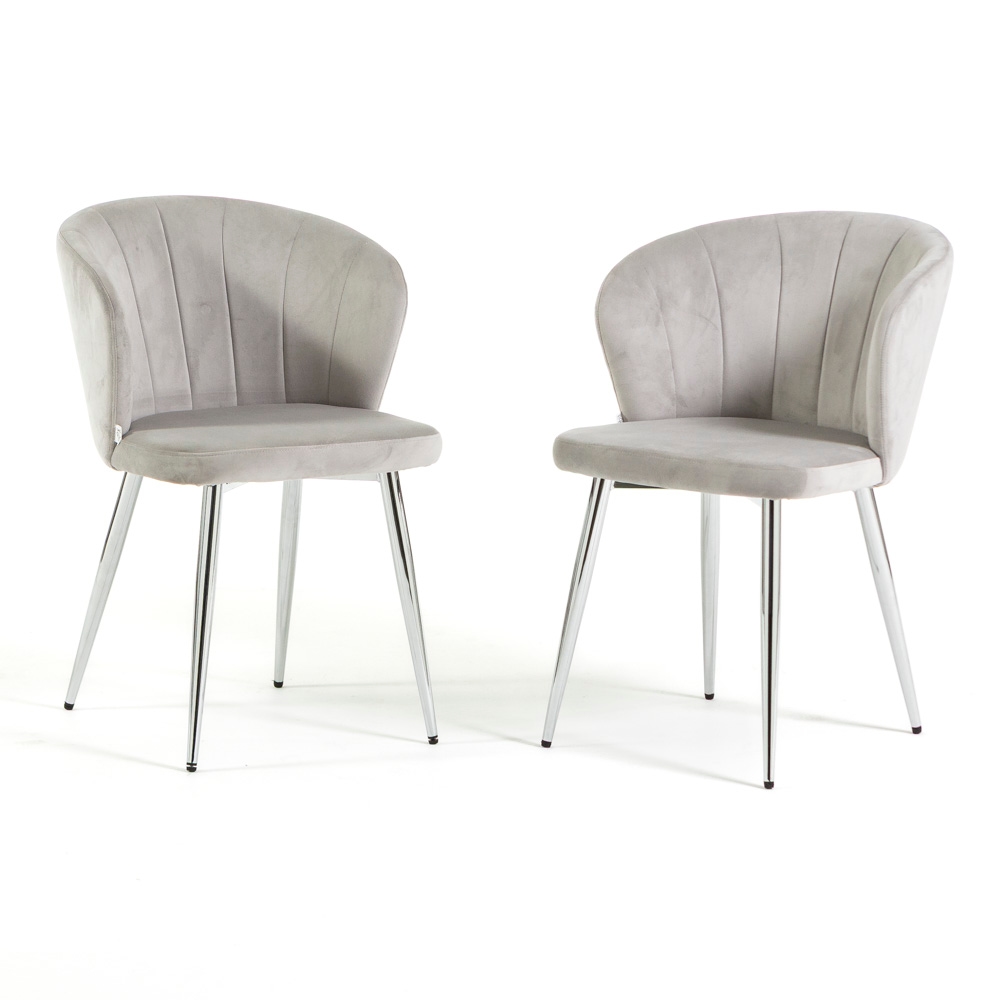 RATTATAN Set aus 2 Samtstühlen mit umhüllender Rückenlehne, Metallbeinen und elegantem Design – für Küche, Bar und Restaurants – Clarissa – Grau