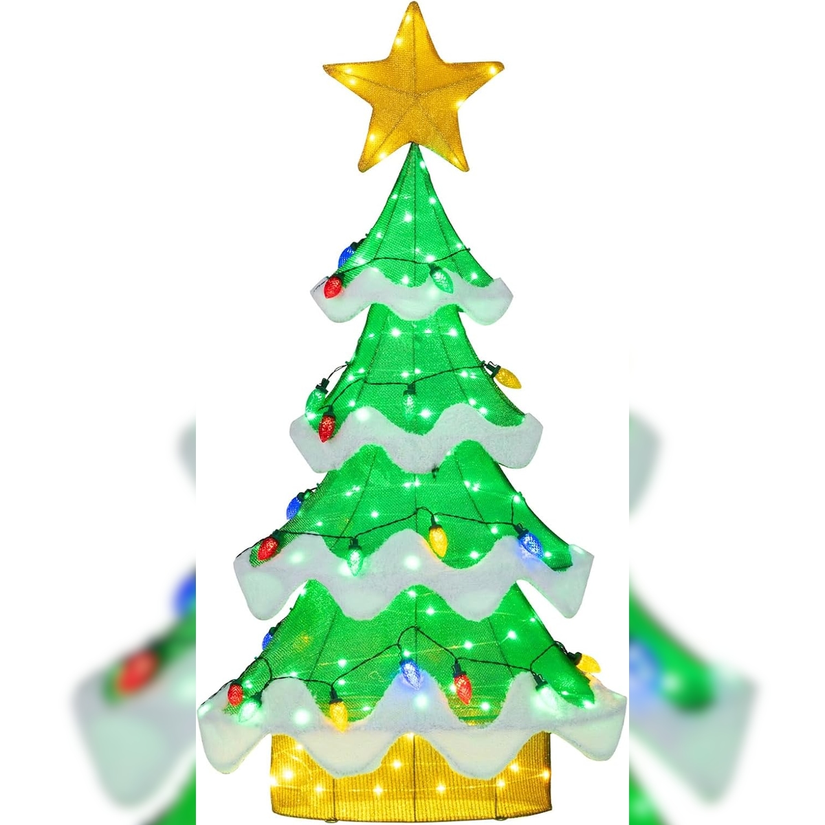COSTWAY 130 cm beleuchtete Weihnachtsdekoration mit LED-Lichtern, Weihnachtsdekoration mit stern- und erdbeerförmigen Glühbirnen