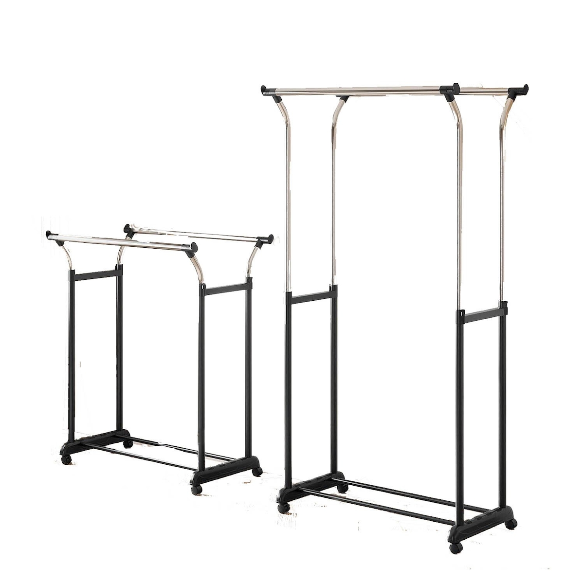 COSTWAY Kleiderständer auf Rollen, Kleiderständer mit doppelter Stange und verstellbarer Höhe, Kleiderstange mit 2 Reihen, höhenverstellbar